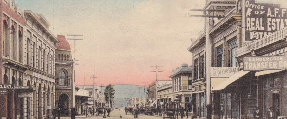Higuera Street was home to Harrington Bros. Harness and Saddle, Sandercock Transfer, and the Union Meat Market which were all thriving businesses in the late 1800s. Sandercock Transfer, although no longer on Higuera St, is still going strong and is the oldest family owned business in SLO.
